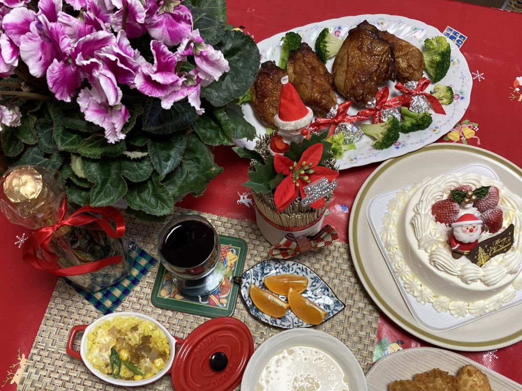 今夜はクリスマスイヴ♡仲人さんご夫妻から素敵なシクラメンを頂きました。畳屋女房、簡単にクリスマスバージョンで夕食を作りました。せっかくなので、中央に畳の耳で作った畳小物を飾りました。畳屋にとっては年末大忙しですが買い物途中、信号待ちで横を見るとオープンカーに乗ったサンタクロースがいるじゃないですか。すごくラッキーな温かい気持ち❤になりました。