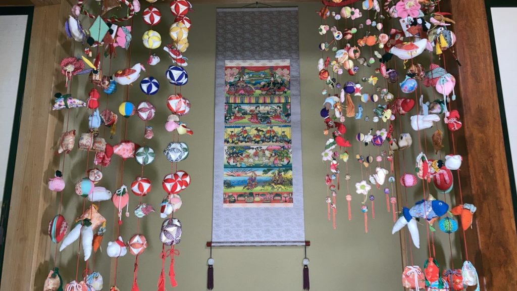 大安吉日♡自宅の床の間にお雛様の掛け軸と吊るし雛の飾り付けを致しました。