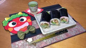 畳屋女房です。今日は節分です。朝から雨が降り、お買い物に行く気にならず冷蔵庫の中の食品で恵方巻を作ってみました。お昼前には出来上がり、せっかくなので、本日の主役「鬼」さんに畳の縁で蝶ネクタイを作ってみました。ランチョン […]