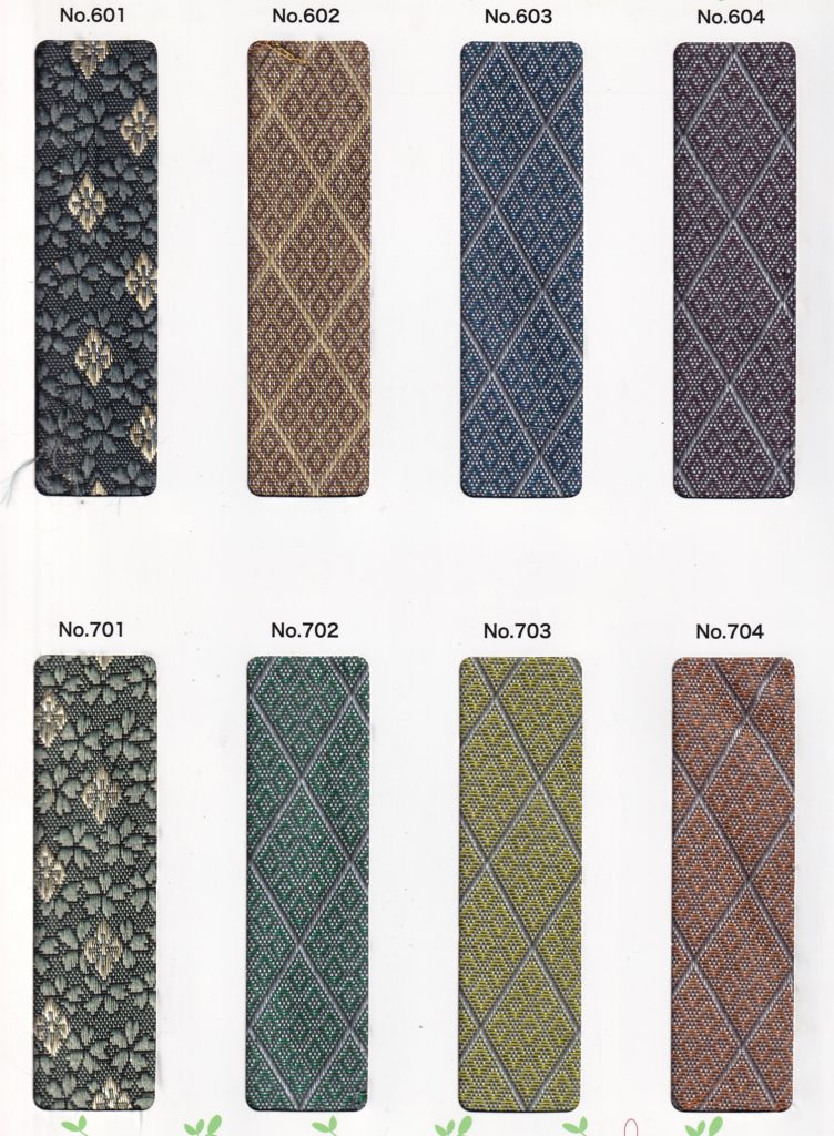 人気の畳縁の一部をご紹介します。無地の縁もあります。
